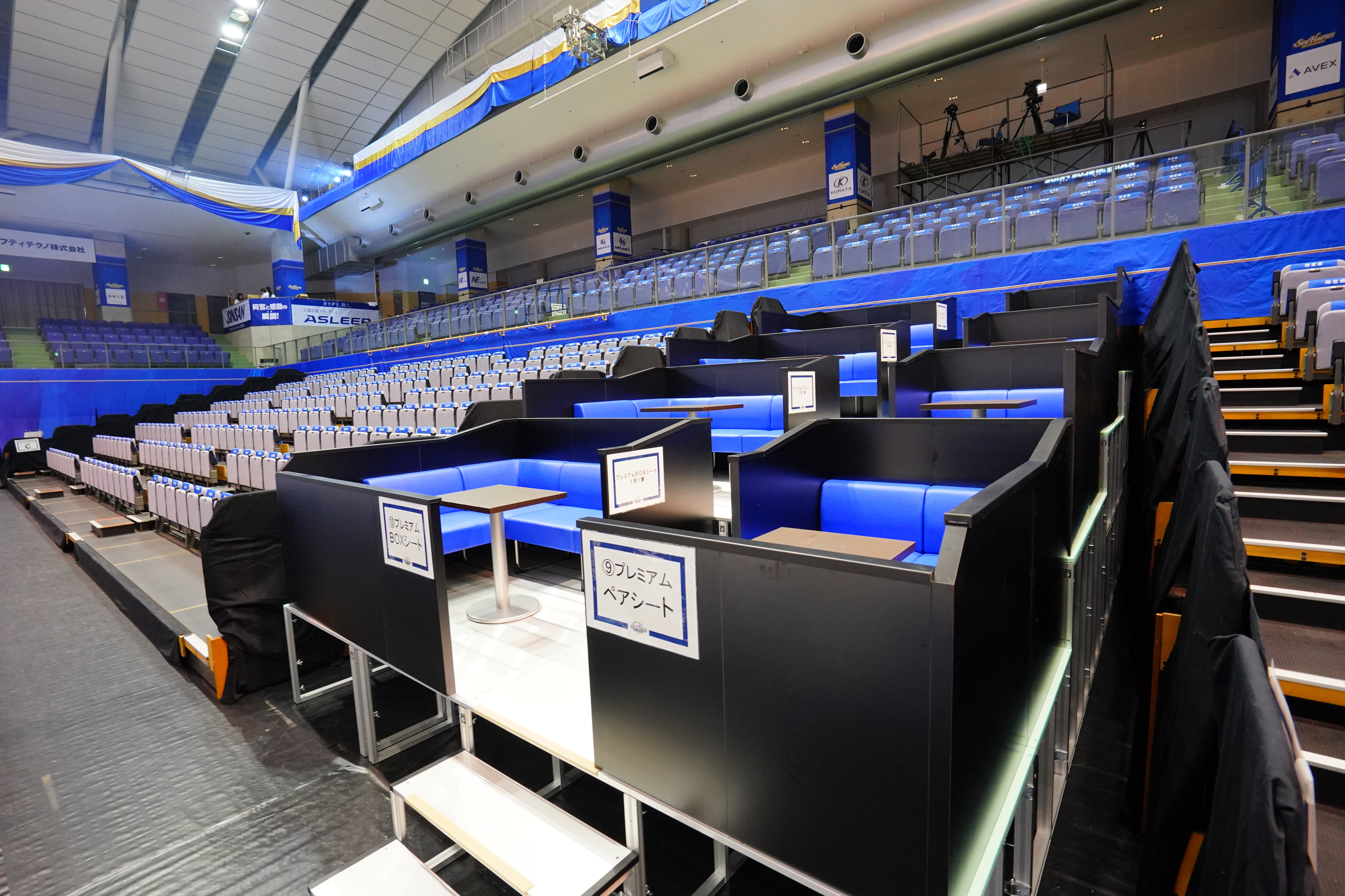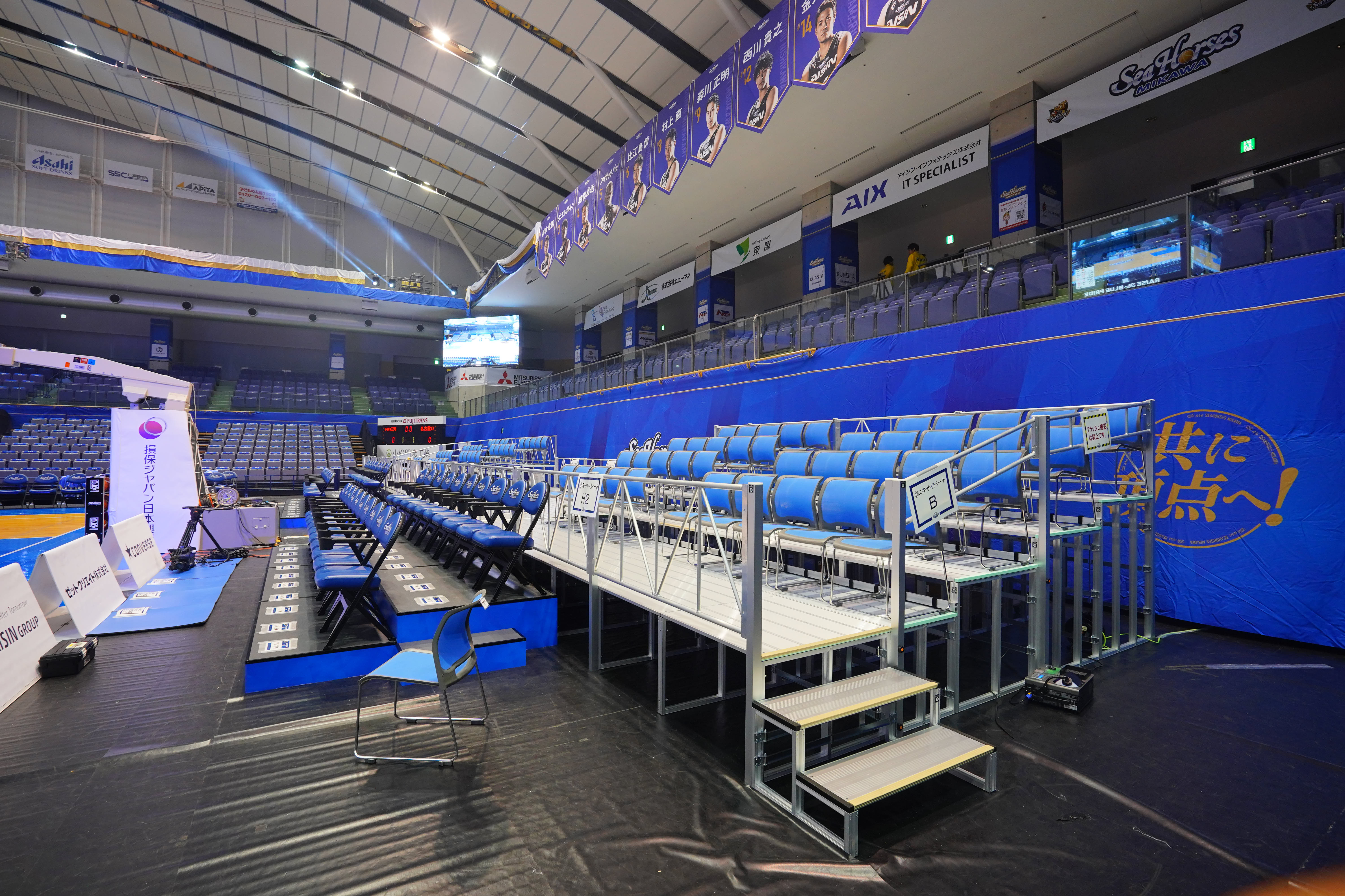- 今までは別のステージを使用されていたが、施工準備に時間がかかるため、設置・撤去が簡単な観覧席を探されていました。