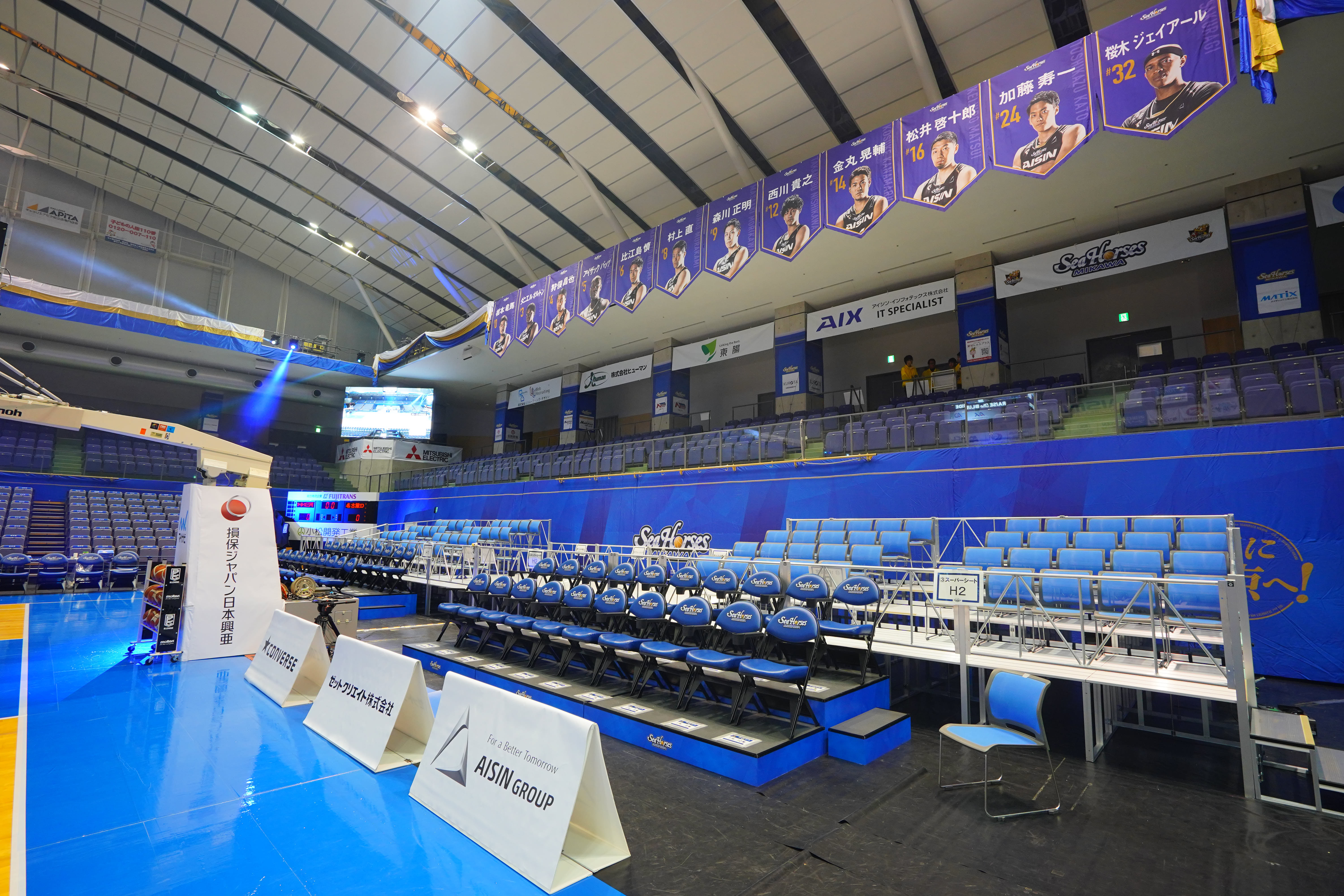 雪のため、冬の季節は屋内スポーツの競技試合が学生・一般を含めて多くなりますので、パックスアルミ観覧席を導入しました。