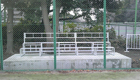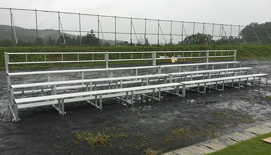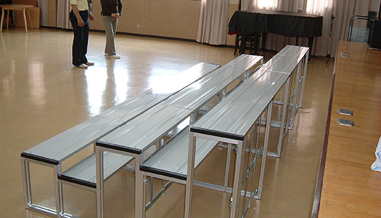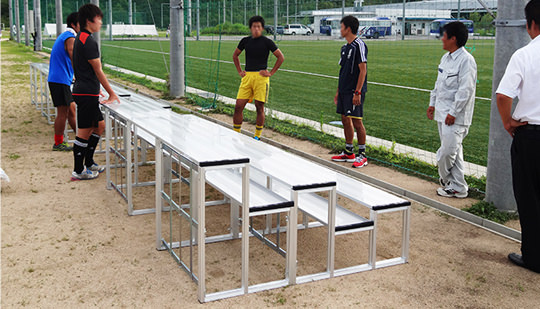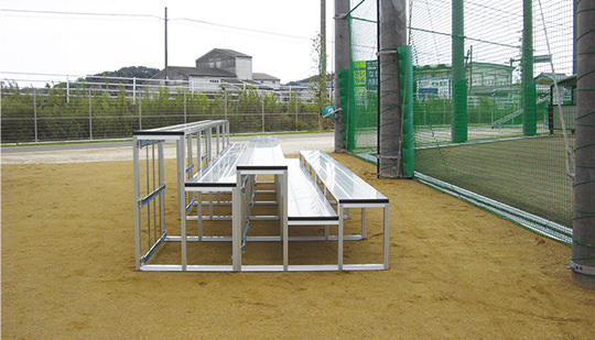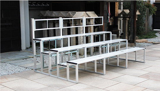 練習の観覧にベンチを使用していましたが、後ろの方が見えにくいと話が出ており、段差のあるアルミ製観覧席を購入しました。いろいろな場所に設置できるので非常に便利です。