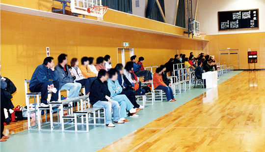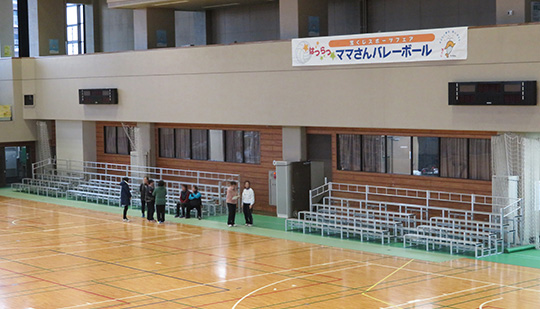 雪のため、冬の季節は屋内スポーツの競技試合が学生・一般を含めて多くなりますので、パックスアルミ観覧席を導入しました。