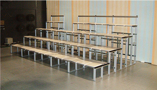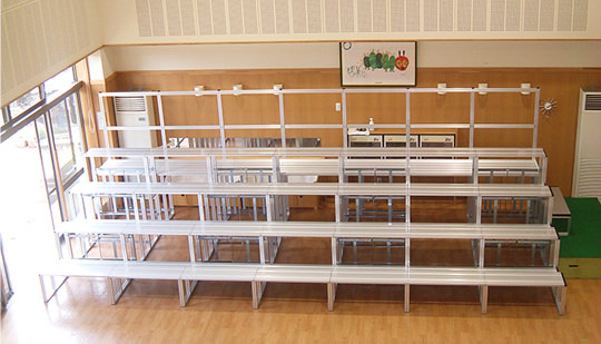 全国の子供たちにお芝居を観劇するときの観客席として利用したいと検討した時に、移動や組立が簡単なアルミ製観覧席で購入を決めました。