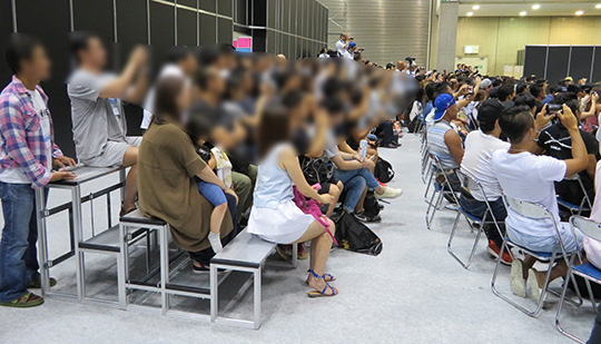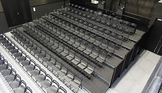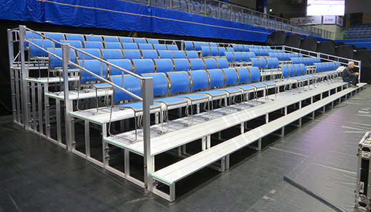 - 今までは別のステージを使用されていたが、施工準備に時間がかかるため、設置・撤去が簡単な観覧席を探されていました。