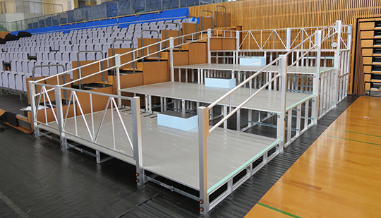 今回購入したステージは部材が少なく、パーツも軽く、誰が組んでも同じレベルで設営できること、また特別な知識・スキルも必要ないので短時間での設営ができ、大変喜んでいます。