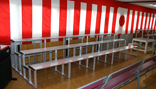 パックス工業の観覧席は、屋外・屋内問わず様々な催しで活用されています!