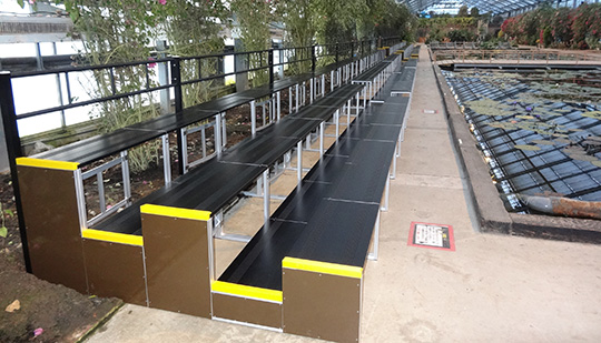 - 今までは木製のベンチを使用されていたが、来園者増加のため、多くの人が座れ、かつ、安全な観覧席を探されていました。